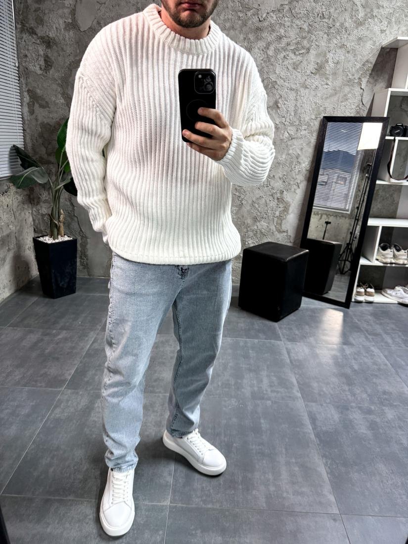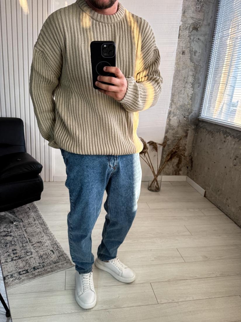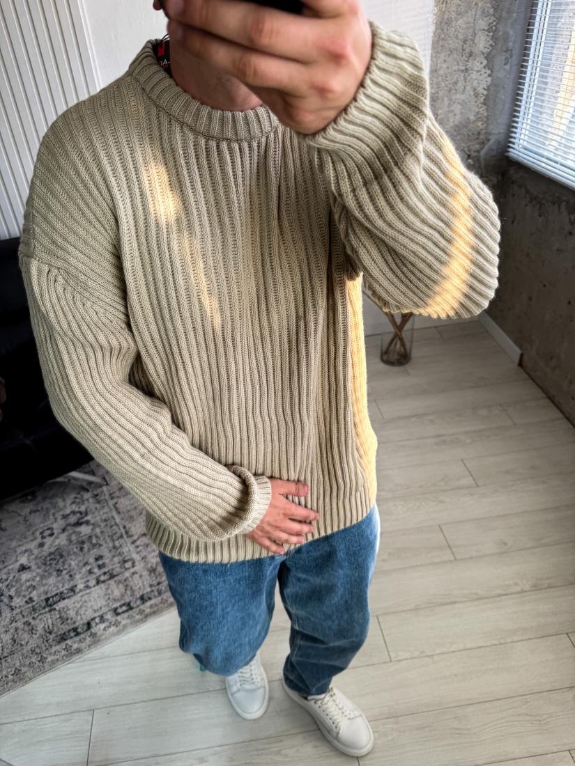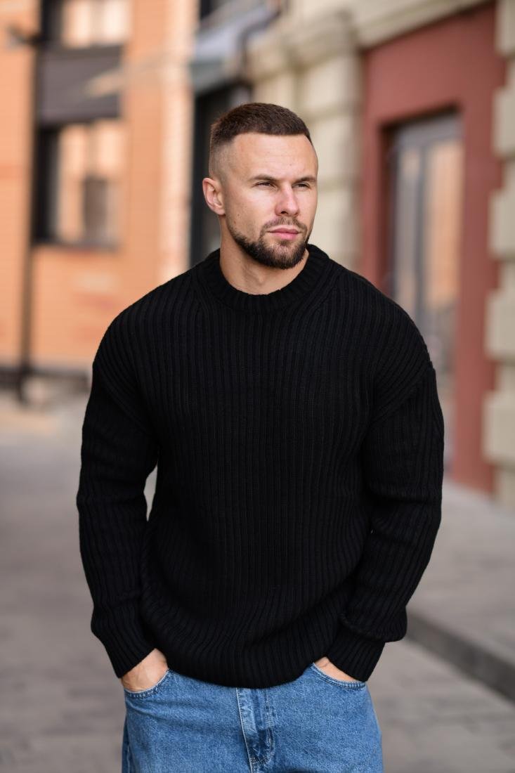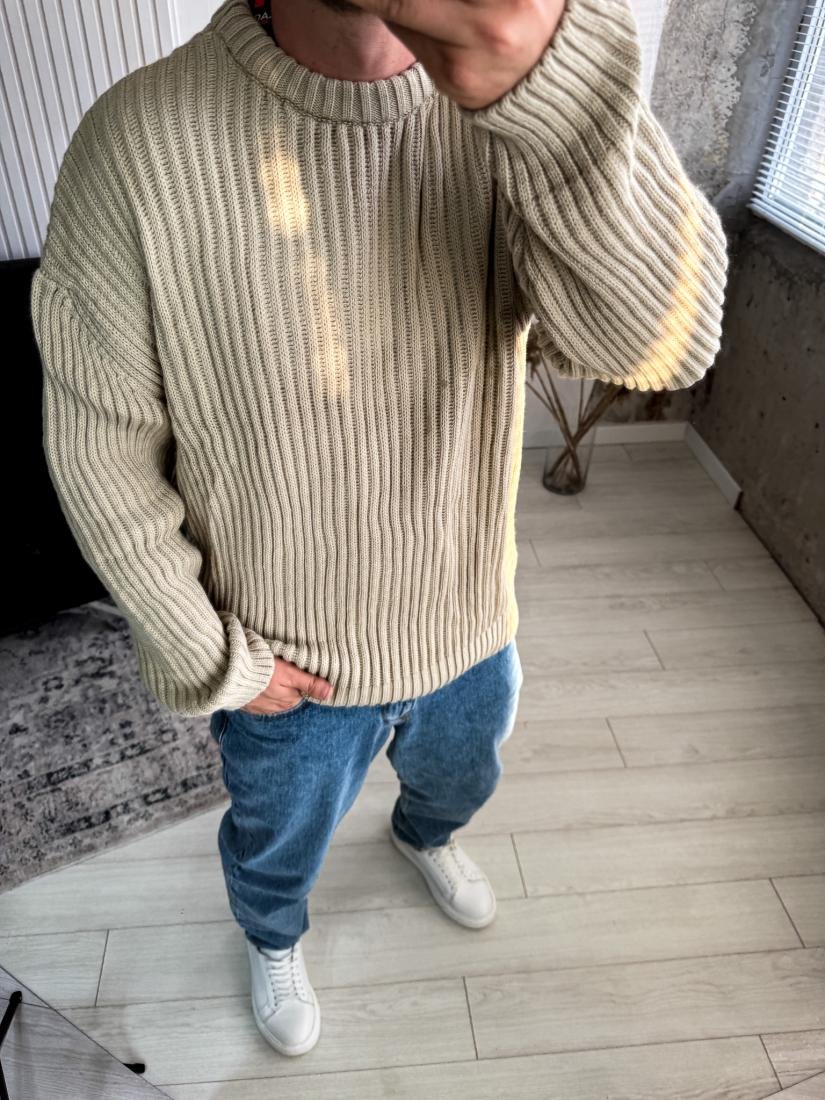 Чоловічий в’язаний светр із фактурною резинкою. М’який, еластичний та комфортний для щоденного носіння.