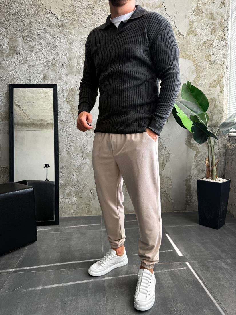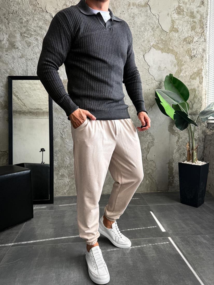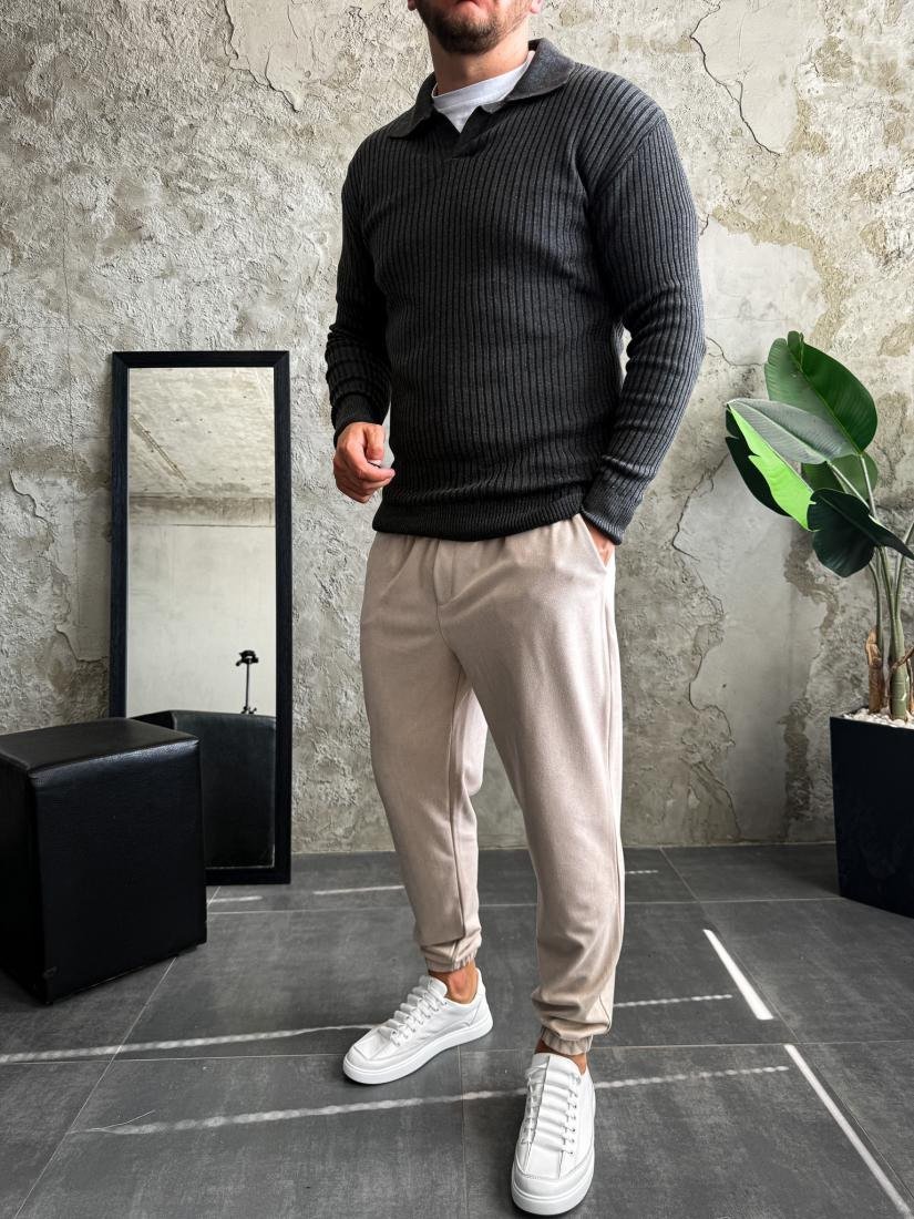 Лаконічний чоловічий лонгслів із вʼязаною фактурою та коміром.